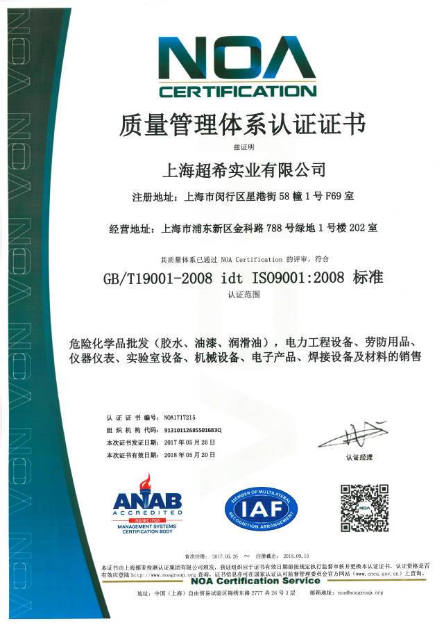 質(zhì)量管理體系認(rèn)證證書(shū)