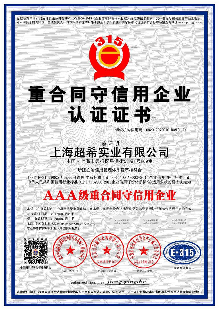 重合同守信用企業(yè)認(rèn)證證書(shū)