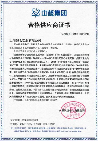 中核集團(tuán)合格供應(yīng)商證書(shū)